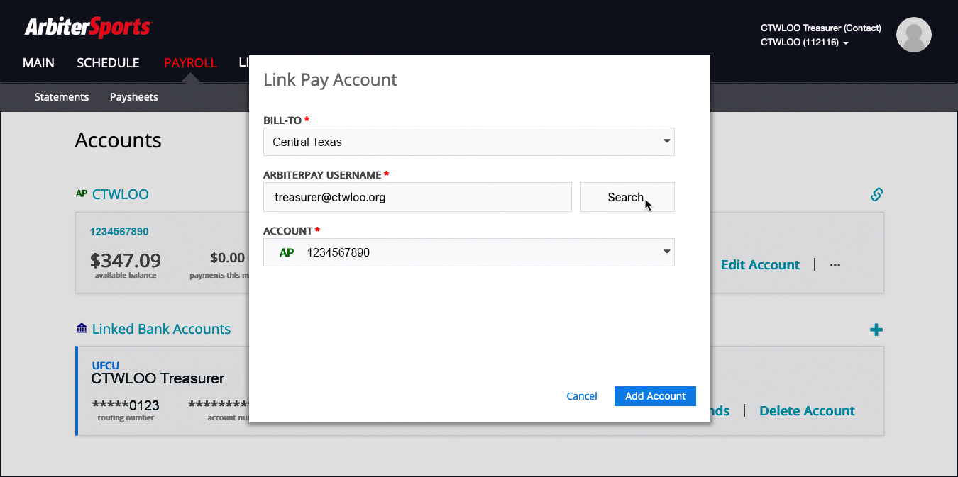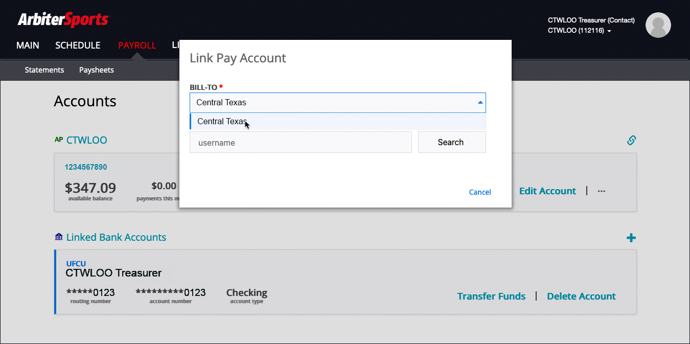 One of the ways teams can pay a CTWLOO invoice is by transferring money through ArbiterPay using the Payee Username treasurer@ctwloo.org and Payee Account Number 4914496012. The following brief video provides step by step instructions.